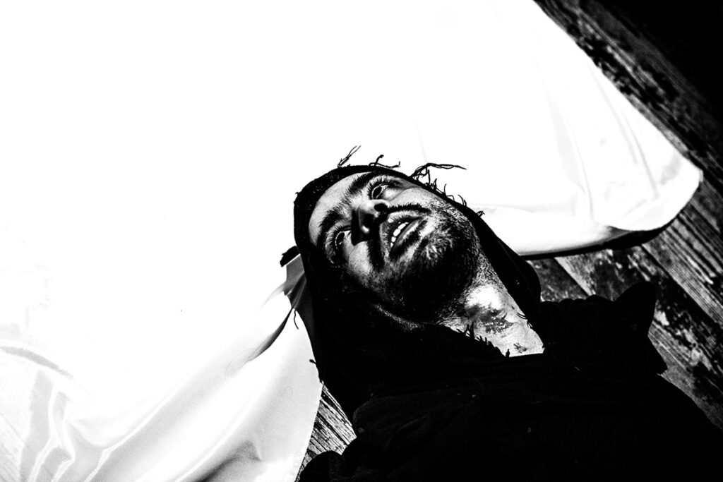 W warstwie realizacyjnej spektakl odnosi się do tradycji teatru ubogiego i pracy laboratoryjnej. Redukując scenografię i środki pozasceniczne do absolutnego minimum, koncentrujemy się na grze aktorskiej i tekście: na rytmie słowa, intensywności głosu i fizycznym napięciu obecności. To ciało staje się przestrzenią konfliktu – polem, w którym ujawniają się instynkty przemocy, pragnienia i lęku.