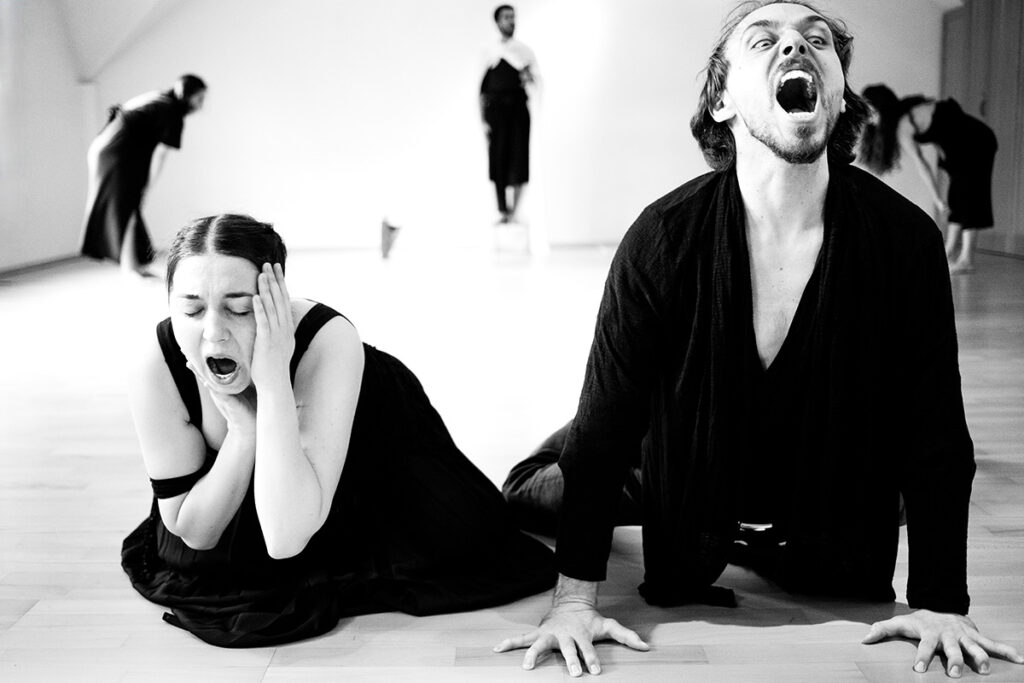 W warstwie realizacyjnej spektakl odnosi się do tradycji teatru ubogiego i pracy laboratoryjnej. Redukując scenografię i środki pozasceniczne do absolutnego minimum, koncentrujemy się na grze aktorskiej i tekście: na rytmie słowa, intensywności głosu i fizycznym napięciu obecności. To ciało staje się przestrzenią konfliktu – polem, w którym ujawniają się instynkty przemocy, pragnienia i lęku.