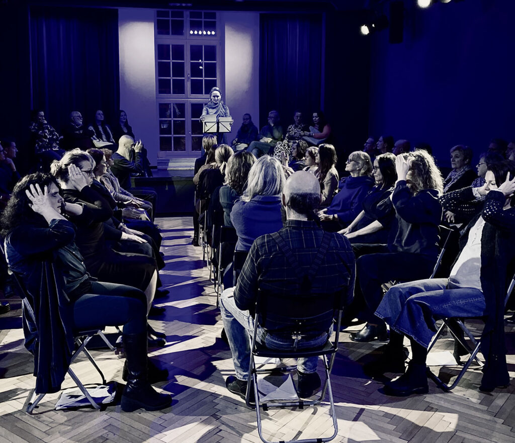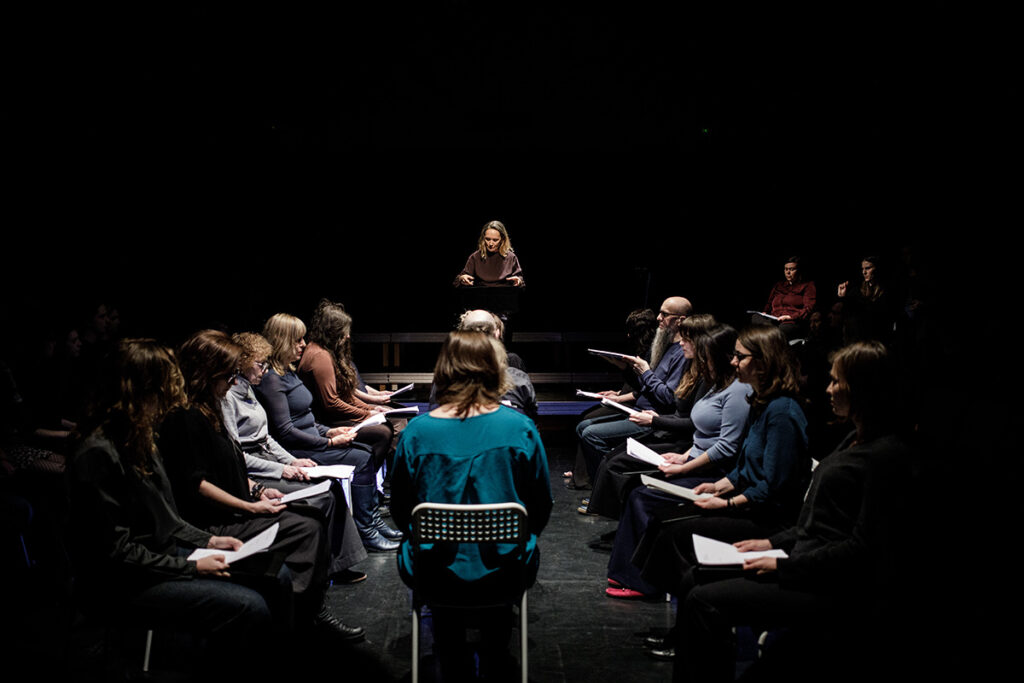 Czytanie performatywne tekstu Rity Jankowskiej, w reżyserii Autorki, w wykonaniu Społecznego Chóru Czytającego (Polska)